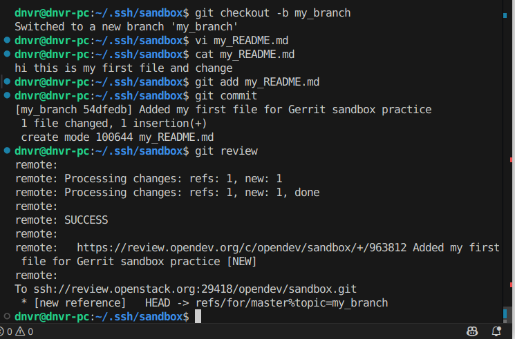 - I then configured git-review so that it knows about Gerrit.